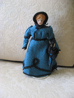 I have been going through my miniature collection and came across these beauties. These dolls were made by my daughter and myself many years ago. I just wanted to share some of the miniature creations we have made. The first is a little baby all snug and warm in a bunting bag.